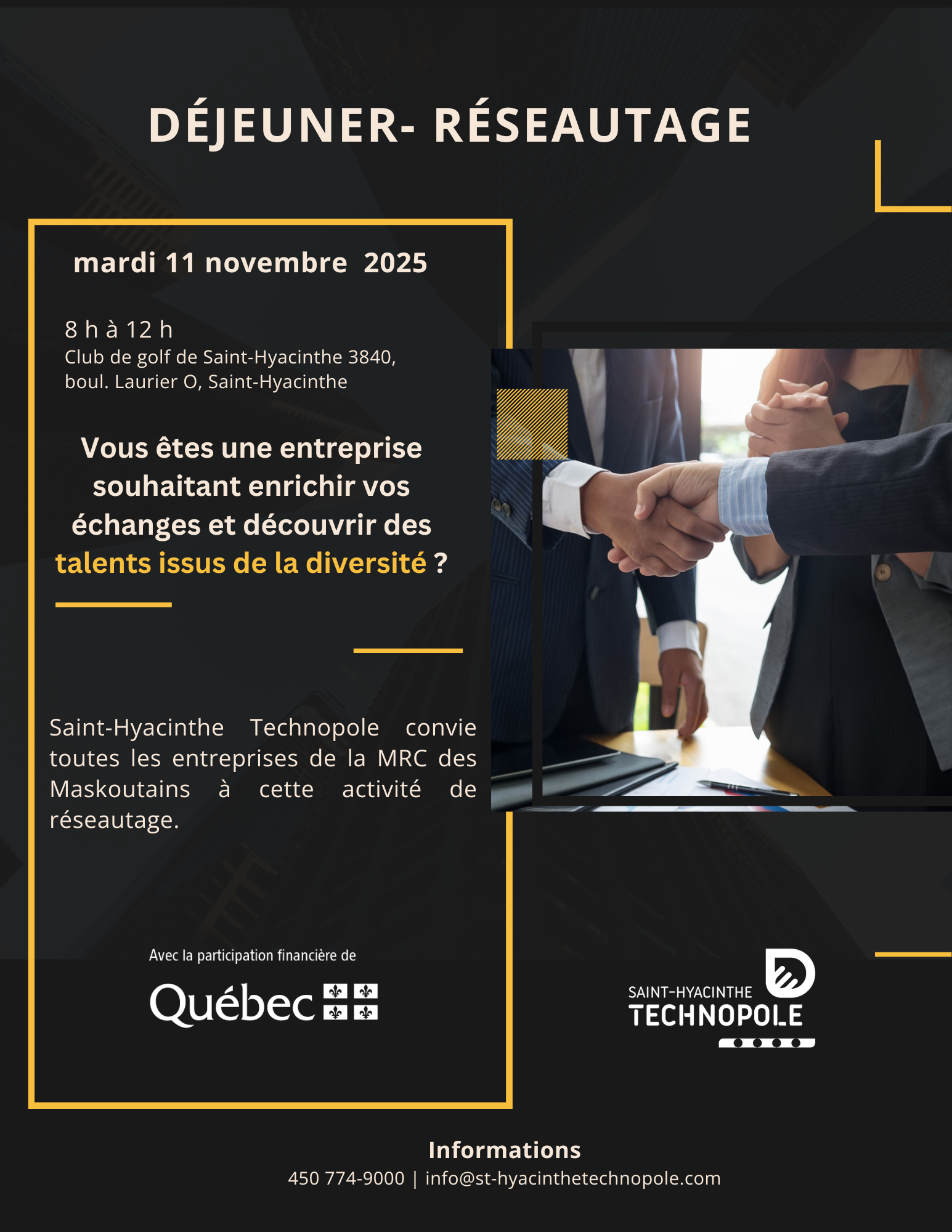 Saint-Hyacinthe Technopole convie toutes les entreprises de la MRC des Maskoutains à cette activité de réseautage.