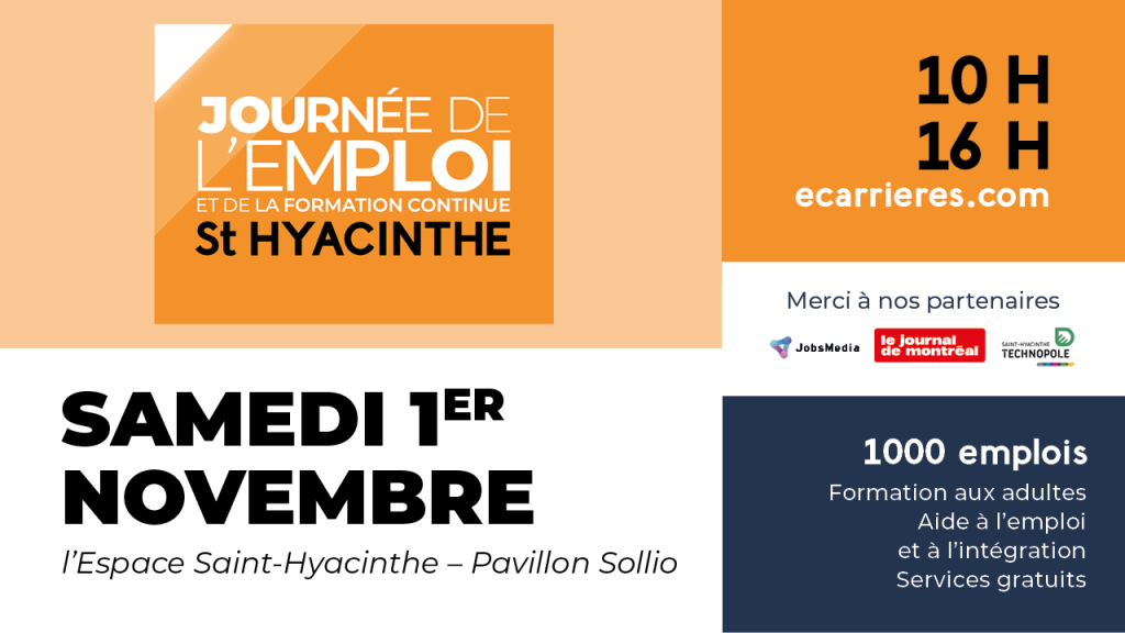 Venez nous rencontrer le 1er novembre à la journée de l'emploi de Saint-Hyacinthe